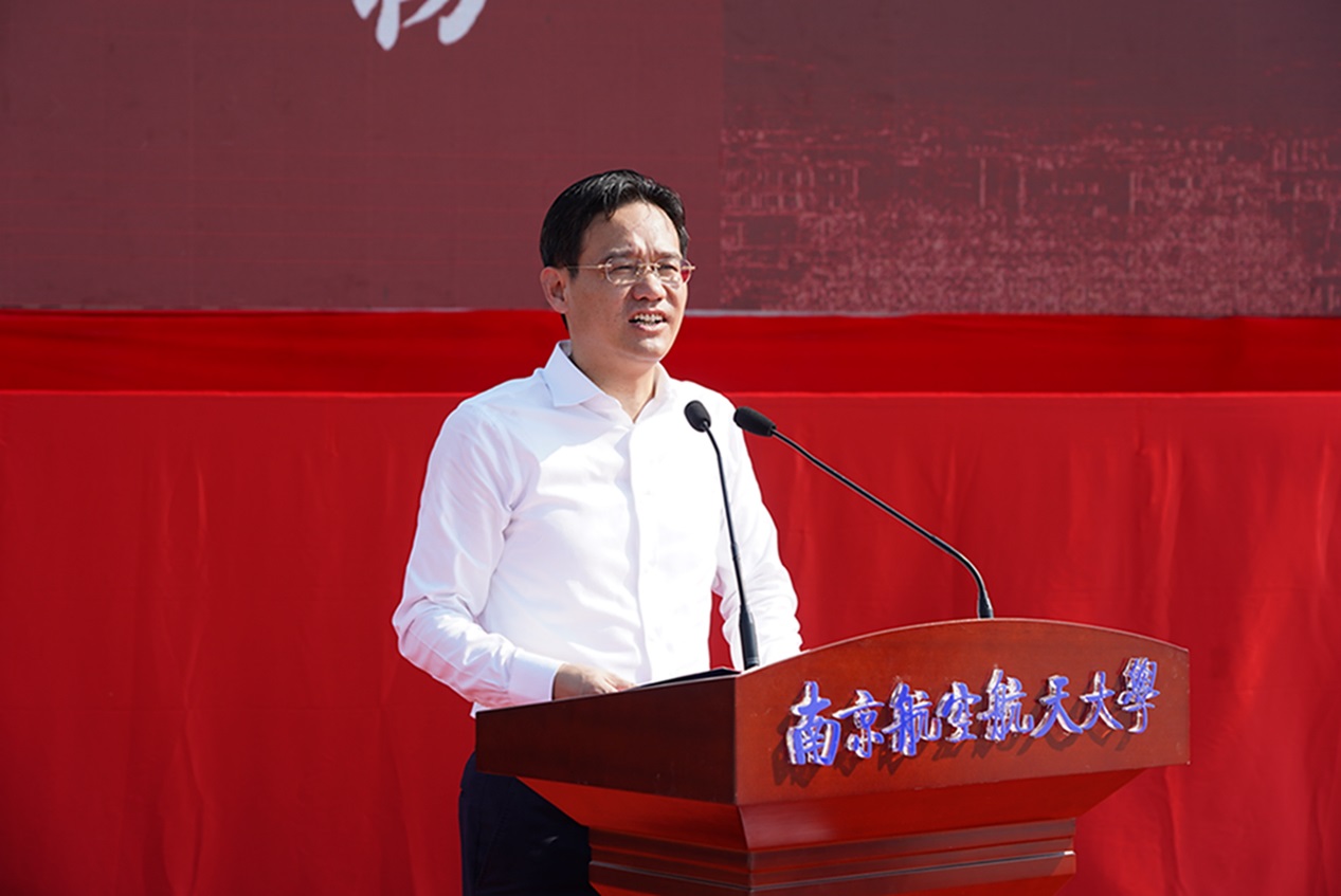 校党委书记郑永安在讲话中指出,在全国上下热烈庆祝建党100周年的喜庆氛围中,历经13个月的紧张施工,天目湖校区二期第一批工程在今天正式交付了!这是南航与溧阳共建天目湖校区过程中的一件大喜事,标志着南航“一校两地四区”空间布局掀开了振奋人心的新篇章。郑永安表示,建设天目湖校区是溧阳和南航双方主动服务长三角一体化战略、建设“强富美高”新江苏、践行“走出南航的围墙思考发展,跨出南京城谋划南航未来”办学思想的重要举措,也是溧阳人和南航人同声相应、同气相求,奋力谱写“名城哺育名校、名校滋养名城”的华美篇章。