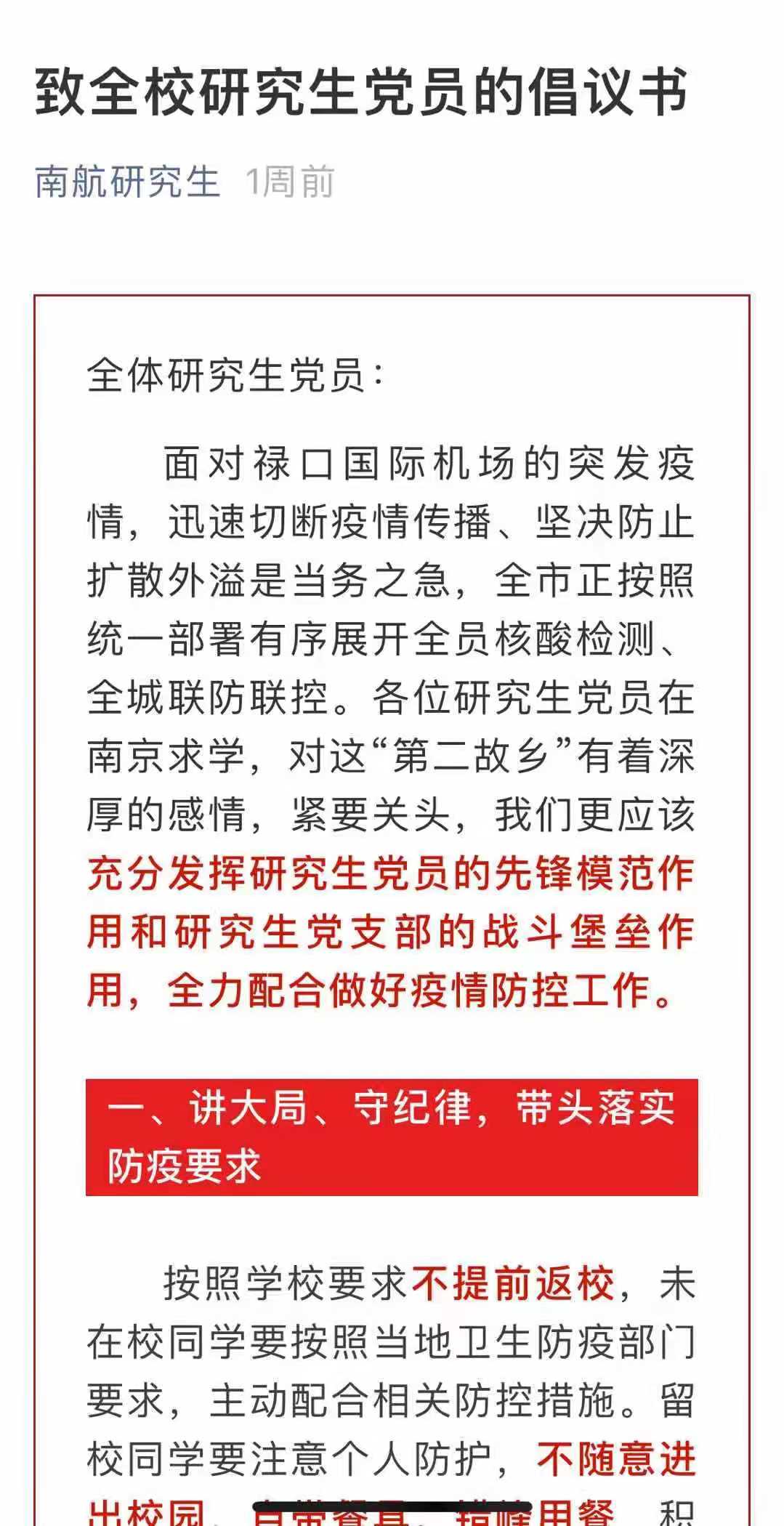 编者按:面对南京新一轮疫情,我校迅速响应,严格贯彻落实疫情防控的相关要求,对学校疫情防控再强化再压实,各单位齐头并进,共克时艰,凝聚起战胜疫情的强大合力,为更好做好疫情防控期间的新闻宣传和舆论引导工作,学校新闻网特开辟“战‘疫’进行时”专栏,记录全校“上下一盘棋”,奋战在抗疫一线的最美风景,坚定师生打好打赢疫情防控阻击战的信心和决心。