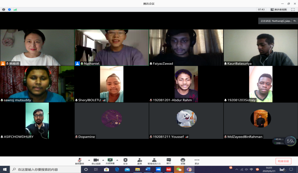 这个暑期,留学生汉语老师韩雅君本可以一心一意在家给刚上小学的女儿辅导作业,然而面对突发疫情,她主动选择和留学生辅导员们一起战斗。在台风“烟花”肆虐的那几天,韩老师和大家一起来到校园里探望留学生,叮嘱他们减少外出,加强宿舍卫生与通风,注意个人防护。韩老师说:“这群孩子也是我的学生,我放心不下。汉语课上,我教过他们一个词‘风雨同舟’,这个时候,我们也要风雨同舟,共待花开。”