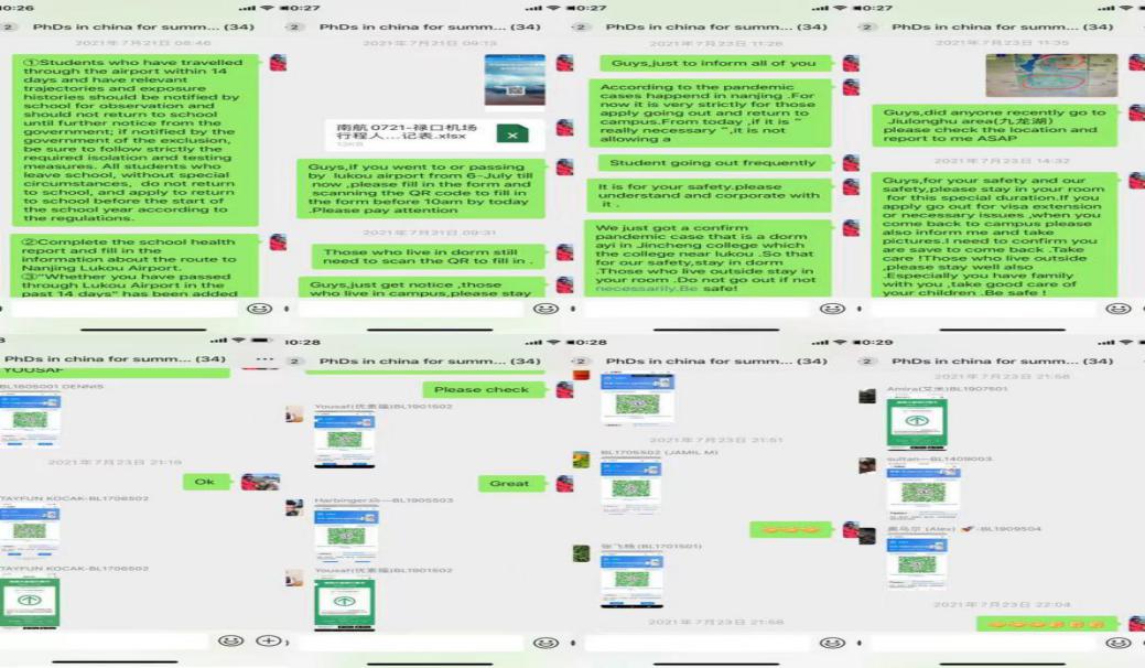 分管留学生日常管理工作的陈峰副院长,孩子正在上小学。原本打算利用暑期带孩子赴各地游学,但疫情当前,他义无反顾地选择了将大部分时间花在工作上,陪在留学生们的身边。疫情发生后的每一天,陈峰都要完成一份写满任务的抗“疫”清单:每天一早在留管工作群梳理前一天留校学生离境、外出学生返校以及各类突发情况,部署留学生疫情防控相关工作;10:00前完成省教育厅、市公安局出入境等管理部门的留学生信息上报;下午2:30与值班辅导员沟通了解留学生们的生活状况和各类需求; 4:00收集每位辅导员工作“日志”;5:00完成当日的留学生疫情防控报告;晚上向院领导班子总结汇报全天情况。疫情初起时,每天在本部和江宁之间来回奔波成为陈峰的工作常态。学校出台更加严格的防控政策之后,多数时间他只能在家远程办公,不放心的时候,还是驱车“两点一线”,到学生宿舍走一走,到核酸检测现场看一看。留学生多数是“夜猫子”,陈峰的作息时间也因为他们做出相应调整,经常工作到深夜,不敢放松或懈怠。“为人父母,才更能体会父母的那份牵挂。这些孩子不远万里来中国求学,疫情突发,他们远在家乡的亲人一定很担心,我们在这个时候必须和他们站在一起,守护他们的健康和安全。”面对自己的选择,陈峰如是说。