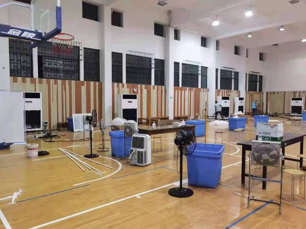 7月23日下午,连夜为明故宫校区核酸检测点——体育馆副馆安装10p空调6台。8月1日,为临时设置的离退休教职工取药点——西苑教职工活动中心配备6台大功率电扇。