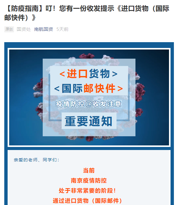 通过学校移动平台面向全体师生发布进口货物(国际邮快件)收发注意事项。