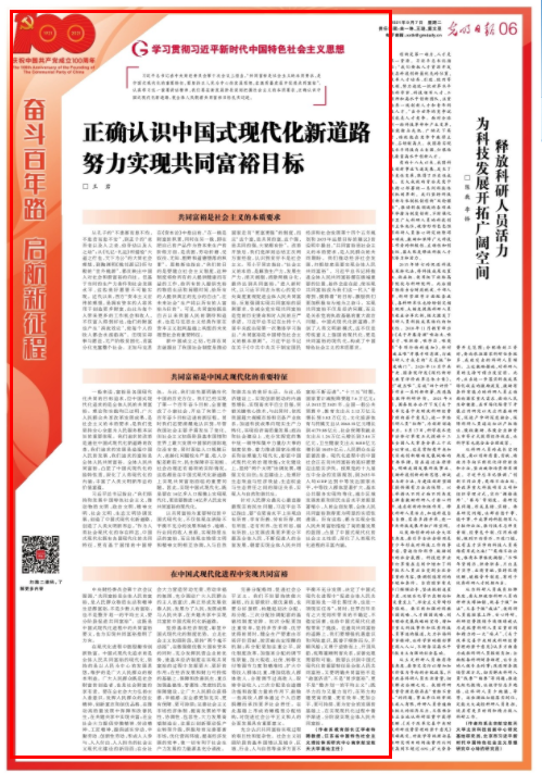 9月7日出版的《光明日报》在第06版刊发了我校王岩教授的理论文章《正确认识中国式现代化新道路 努力实现共同富裕目标》,现将全文转发如下: