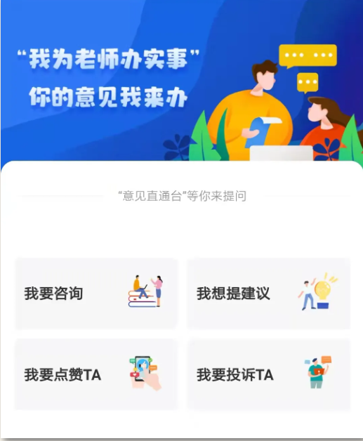 同时,为了能精准服务教师,学校教师工作部联合机关党委、各直属单位开通了“意见建议直通车”,于教师节当天面向3000余名教师开始试运营,设置“限时办结功能”“专人负责答疑”等运行机制,进一步拓宽广大教师与职能部门的沟通渠道、及时传递教师心声,帮助教师解决烦心事、愁心事。