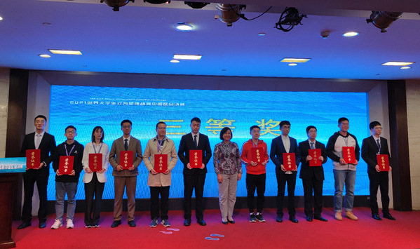 康国华教授代表优秀指导教师上台领奖 学校获“优秀组织奖”