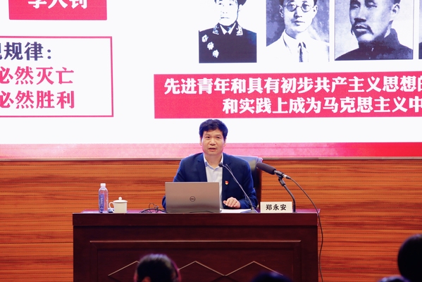 郑永安以翔实的史料和丰富的事例讲述了伟大建党精神形成的时代背景,深刻指出中国共产党的先驱们广泛传播马克思主义、领导工农运动为伟大建党精神的孕育形成奠定了坚实的理论根基和现实基础;深刻论述了伟大建党精神是贯穿中国共产党人精神谱系的一条红线,精神谱系是伟大建党精神这一“源头”在不同历史时期的“活水”涌流。结合南航69年的办学实践,他重点讲述了“抗美援朝精神”“载人航天精神”“新时代北斗精神”在高水平人才培养、高质量服务国防建设方面的生动体现,强调要以伟大建党精神为指引,传承好“航空报国”红色基因和“志在长空”蓝色梦想,切实增强做中国人的志气、骨气、底气,为实现中华民族伟大复兴作出新时代南航人应有的贡献。