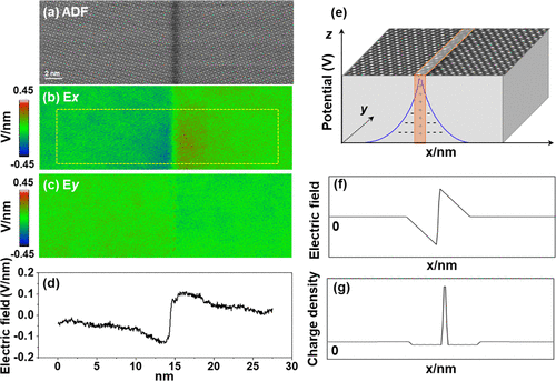 我们运用4D-STEM技术首次直观的给出在晶界两侧空间电荷的分布,并验证了这种分布符合经典的双肖特基势垒理论。通过Σ5 (310) 晶界这一经典案例展示了4D-STEM技术对分析晶界特性方面的强大功能,验证了该技术对晶界周围的电场进行直接成像的可靠性。