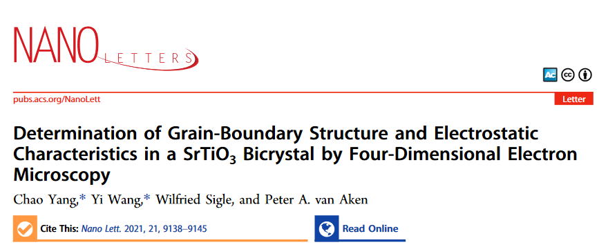 近日,我校分析测试中心在基于直接电子成像相机的4D-STEM先进成像技术研究方面取得进展。研究工作以“Determination of Grain-Boundary Structure and Electrostatic Characteristics in a SrTiO3 Bicrystal by Four-Dimensional Electron Microscopy”为题发表在材料领域期刊《Nano Letters》上。该论文第一作者为王毅教授指导的博士生(德国马普固态研究所),我校分析测试中心为论文共同通讯单位。该篇论文是我校分析测试中心运行以来发表的首篇高水平国际期刊论文。