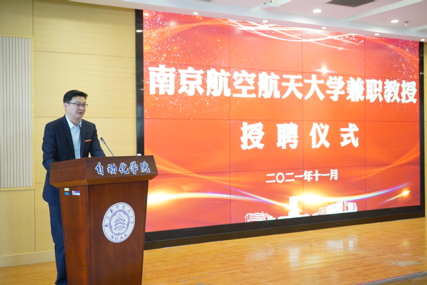 11月27日下午,航空工业西安飞行自动控制研究所党委书记、副所长王东辉研究员“兼职教授”授聘仪式在我校自动化学院举行。航空工业西安飞行自动控制研究所人力资源部/党委干部部部长李玮奇,副校长姜斌,自动化学院党委书记李文雷、院长江驹、副院长陈谋及相关领导和师生代表参加仪式。姜斌为王东辉颁发聘书并佩戴校徽。李文雷主持仪式。