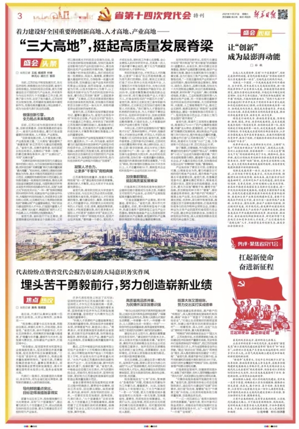 11月24日至27日,中国共产党江苏省第十四次代表大会在南京召开。会议回顾总结了省第十三次党代会以来的工作和取得的成就,对今后五年江苏发展和现代化建设进行了系统部署,吹响了谱写“强富美高”新江苏现代化建设新篇章的集结号。