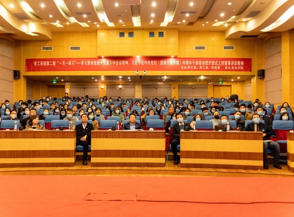 11月29日,学工系统第二期“一月一研习”集体政治理论学习会召开,专题学习党的十九届六中全会精神和习近平总书记在中央党校(国家行政学院)中青年干部培训班开班式上的重要讲话精神。校党委副书记刘宇雷出席会议并讲话。学工部、研工部、校团委等有关单位负责同志,各学院党委副书记和全体专兼职辅导员参加研习。