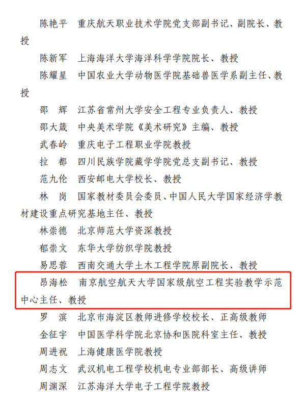 近日,教育部下发了《国家教材委员会关于首届全国教材建设奖奖励的决定》(国教材〔2021〕6号),公布了首届全国优秀教材奖、教材建设先进个人及先进集体获奖名单。我校航空学院教授昂海松被授予“全国教材建设先进个人”荣誉称号。