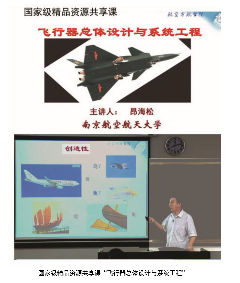 充满了爱国情怀的昂海松教授还十分注重将爱国主义精神融入到教材、课程和教学中。其中,中共中央党校“共产党员”网络视频教材《现代航空航天技术在军事上作用》被中共中央党校作为全国共产党员网络培训教材。由他负责建设的《航空航天概论》课程获得南京航空航天大学课程思政一等奖。此外,他所培养的胡玲心、段文博、葛讯等优秀学生,先后获得数十项国家级创新大奖,中央电视台曾先后拍摄4部专题片在多个频道播放。