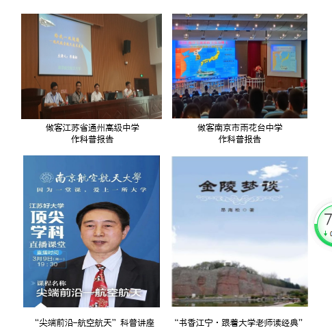 此外,他还积极为众多大中小学和社会团体进行不同层次的科普讲座。2020年疫情期间,昂海松教授面向全国所作的“尖端前沿-航空航天”科普讲座,有多达200.8万人在线观看,央视新闻联播和《中国科学报》均对他进行了专门报道。