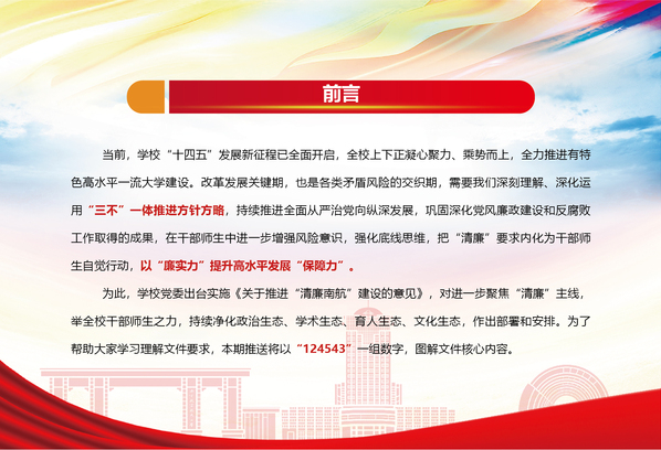 编者按:近日,学校党委出台实施《中共南京航空航天大学委员会关于推进“清廉南航”建设的意见》,对进一步聚焦“清廉”主线,举全校干部师生之力,持续净化政治生态、学术生态、育人生态、文化生态,作出部署和安排。