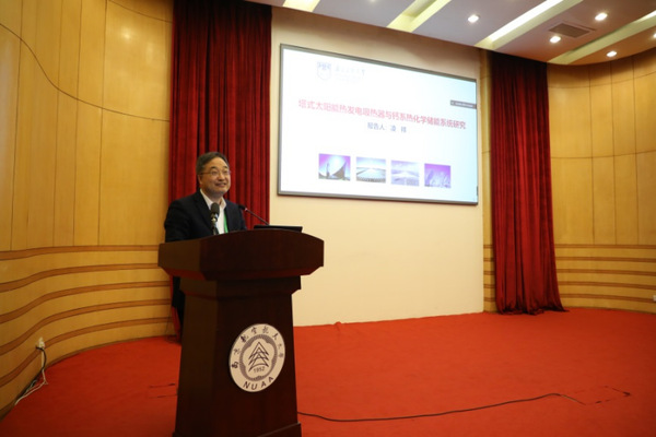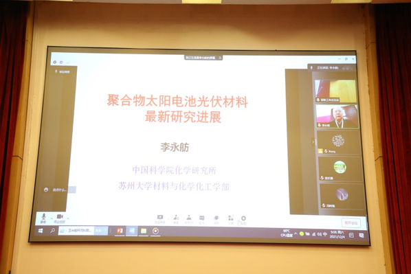 开幕式后,论坛进入了大会报告环节。李永舫首先以《聚合物太阳电池光伏材料最新研究进展》为题,分享了团队在聚合物太阳电池光伏材料的制备、性能、应用方面的最新成果,并勉励青年教师勇于探索,积极投身于科研报国的事业中去。随后,围绕“碳中和”这一主题,凌祥、赵长颖、朱嘉分别做了题为《塔式太阳能热发电吸热器与钙基热化学储能研究》、《碳中和愿景下的能源转型:机遇与挑战》、《微结构光热调控:太阳能热转换、海水淡化与能源器件》的大会报告,与在场师生分享了自己的研究工作及展望。