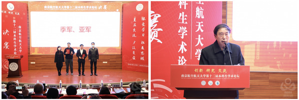 施大宁在总结讲话中指出,南航始终高度重视学生的创新实践能力培养,科学设计实践教学方案、持续加强实践教育平台、不断创新实践指导模式、深入推动科教产教融合。截止目前,学校已建成80个大学生主题创新区、16个校企协同育人平台、81个企业“项目式”实习基地,每年支持1500余个大学生团队开展科创项目研究,形成了多维、立体、丰富、有效的实践教学体系。十余年来,本科生学术论坛已成为提升本科生学术研究能力的主阵地,被评为江苏省双创实践教育中心优秀活动案例。他对在座的所有学生提出殷切期望,希望大家能够继续在深邃博大的学术海洋中尽情探索驰骋,坚持严谨求实的科学态度和求真务实的学习作风,在今后的学习和研究中,创造更加辉煌的成绩!