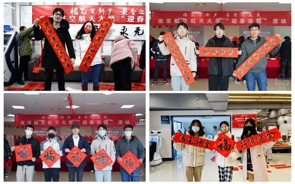 很多师生热情高涨,自发写起了“福”字、春联,展现自己来年百尺竿头更进一步的壮志豪情;留学生们在书法家指导下第一次拿起毛笔,写下大大的“福”字,感受中华优秀传统文化的魅力;校园内,保卫队员、宿管阿姨们正将“福”字高高挂起,处处洋溢着喜庆祥和的新春气息。