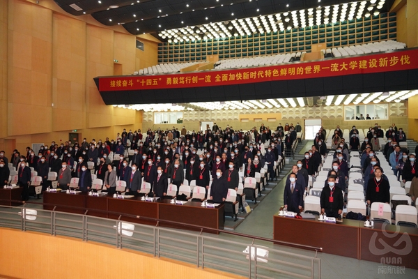 他强调,面向“十四五”,全校要紧密团结在以习近平同志为核心的党中央周围,坚持以习近平新时代中国特色社会主义思想为指导,不忘初心、牢记使命,统一思想、统一意志、统一行动,坚持正确办学方向,坚定发展自信,坚决落实好立德树人根本任务,以只争朝夕的精神做好学校改革发展稳定各项工作,奋力谱写特色鲜明的世界一流大学建设新篇章,以优异成绩迎接党的二十大胜利召开。