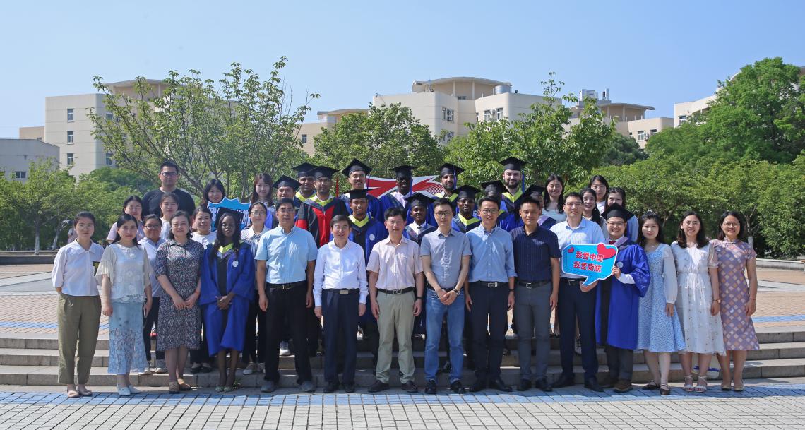 会上还进行了2022届留学研究生学位授予仪式,施大宁为所有毕业生拨穗并颁发学位证书。会议结束后,参会的领导、老师们与2022届留学研究生们合影留念。