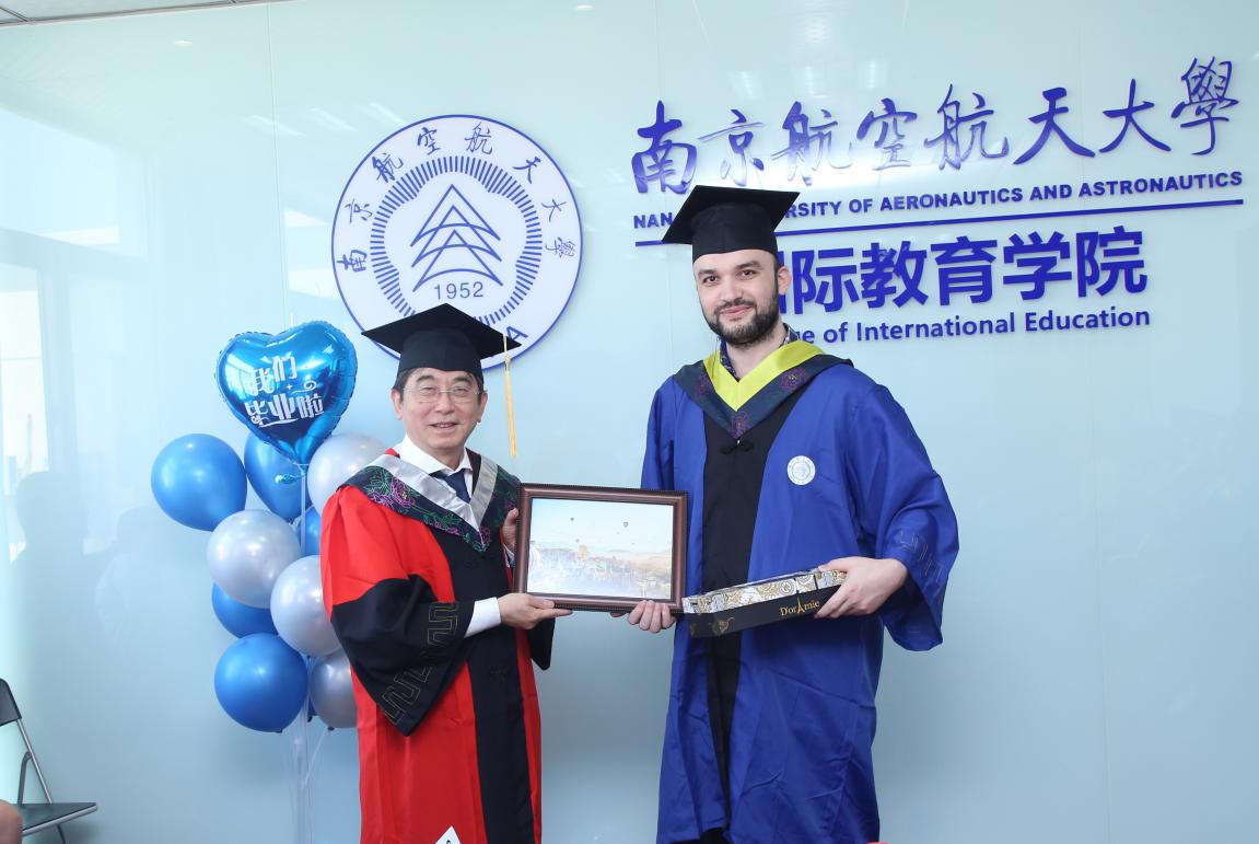 在座谈会环节,毕业生代表坦桑尼亚硕士研究生马伊妮和印度尼西亚硕士研究生黄文彬深情回忆了在南航学习和生活的经历。马伊妮分享了她在南航学习、生活、收获、成长的经历,感谢南航所提供的学术交流、社会实践以及志愿服务的平台,她的学术能力和个人素养都得到了很大提升;黄文彬讲述了自己从一个懵懂求学的学生到创立公司的故事,他感谢南航对他的培养和教育,感谢中国的包容与开放,未来他要继续在南航攻读博士学位,在中国实现自己的梦想。随后,来自土耳其的张天勇和加纳的爱德华作为代表给母校送上富有本国特色的纪念礼物,祝福南航越来越好。魏佳丹为校友/招生宣传大使颁发聘书。