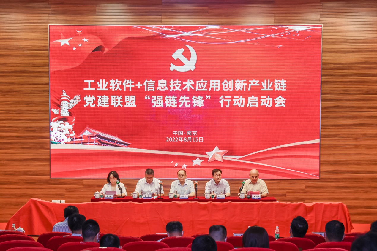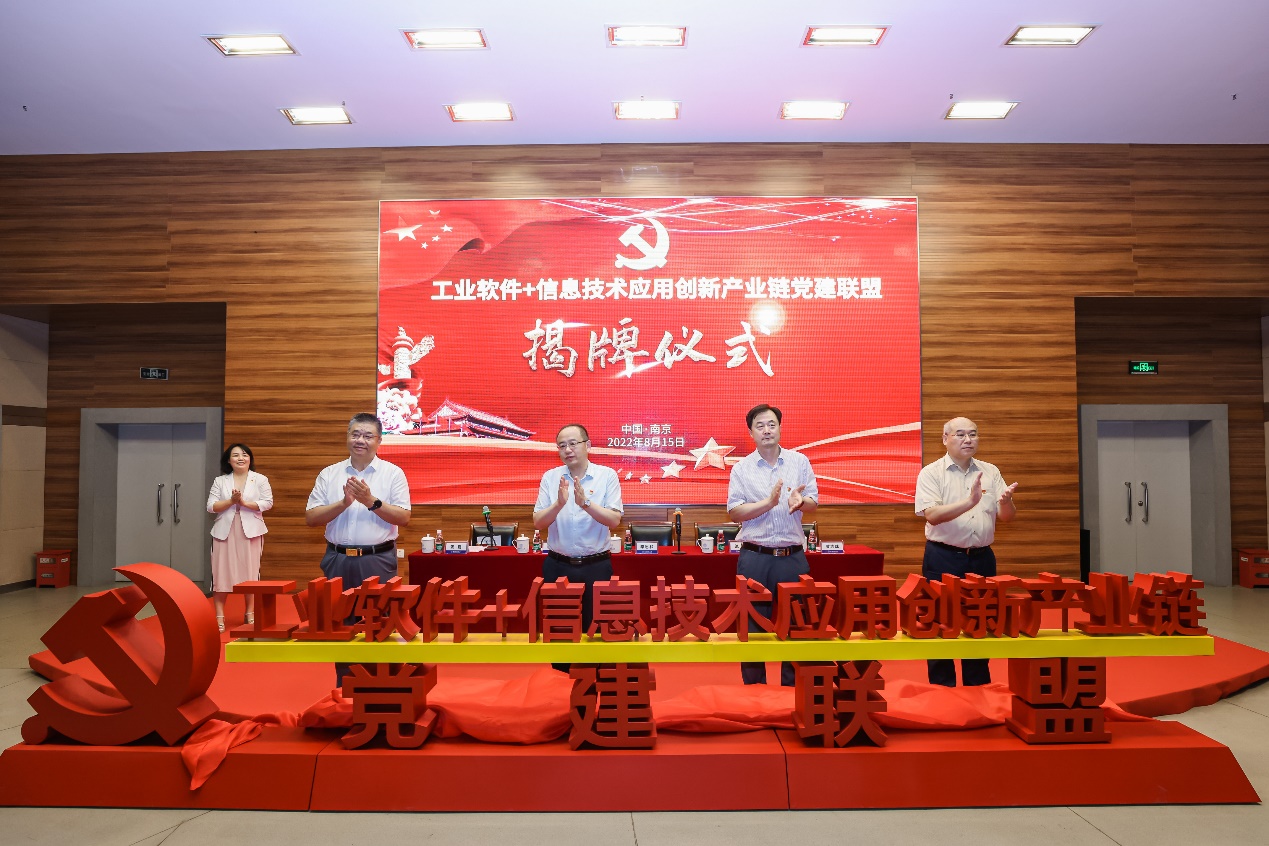 李恩和、池宇、姜良和黄志球共同为党建联盟揭牌,标志着工业软件+信息技术应用创新产业链党建联盟“强链先锋”行动正式启动。