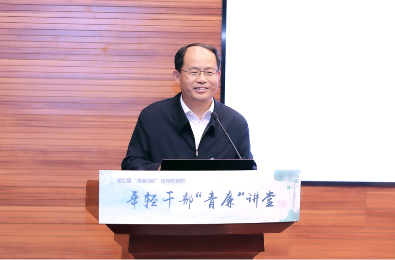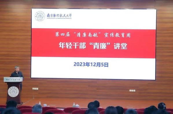 12月5日,第四届“清廉南航”宣传教育周主题活动之一——年轻干部“青廉”讲堂在将军路校区举行。校党委书记单忠德,校党委副书记、纪委书记杭育新出席活动,校党委常委、组织部、统战部部长李遥主持培训。全体专职纪检干部、科级干部、专职辅导员,部分重点风险岗位人员参加了培训。