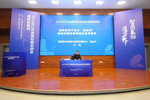 省招就中心相关人员、学校相关部门负责同志到场参加,来自全省136所高校分管学生就业创业工作的学校领导和相关部门负责人共300余人参加。本次研修班是全面贯彻落实党中央、国务院和江苏省委、省政府关于做好高校就业创业工作的决策部署,持续推进高校就业创业指导服务工作人员队伍建设的重要举措,旨在推动提升全省高校就业创业指导工作能力。