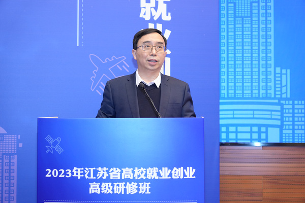 12月1日至3日,由江苏省高校招生就业指导服务中心主办,我校承办的“2023年江苏省高校就业创业高级研修班”(以下简称研修班)在我校举办。教育部学生服务与素质发展中心副主任方伟,江苏省教育厅高校学生处处长王云慧,江苏省高校招生就业指导服务中心主任胡建平、党总支书记缪榕楠,校长姜斌,校党委副书记刘宇雷出席开班仪式。