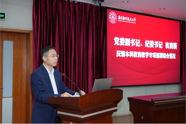 会上,杭育新反馈了本科教育教学专项巡察综合情况,通报了专项巡察发现的共性问题和典型问题,对各单位落实整改提出要求。施大宁解读了本科教育教学审核评估的内涵要求,对标分析了学校可能存在的差距不足,对扎实做好本科教育教学审核评估准备工作作出部署。