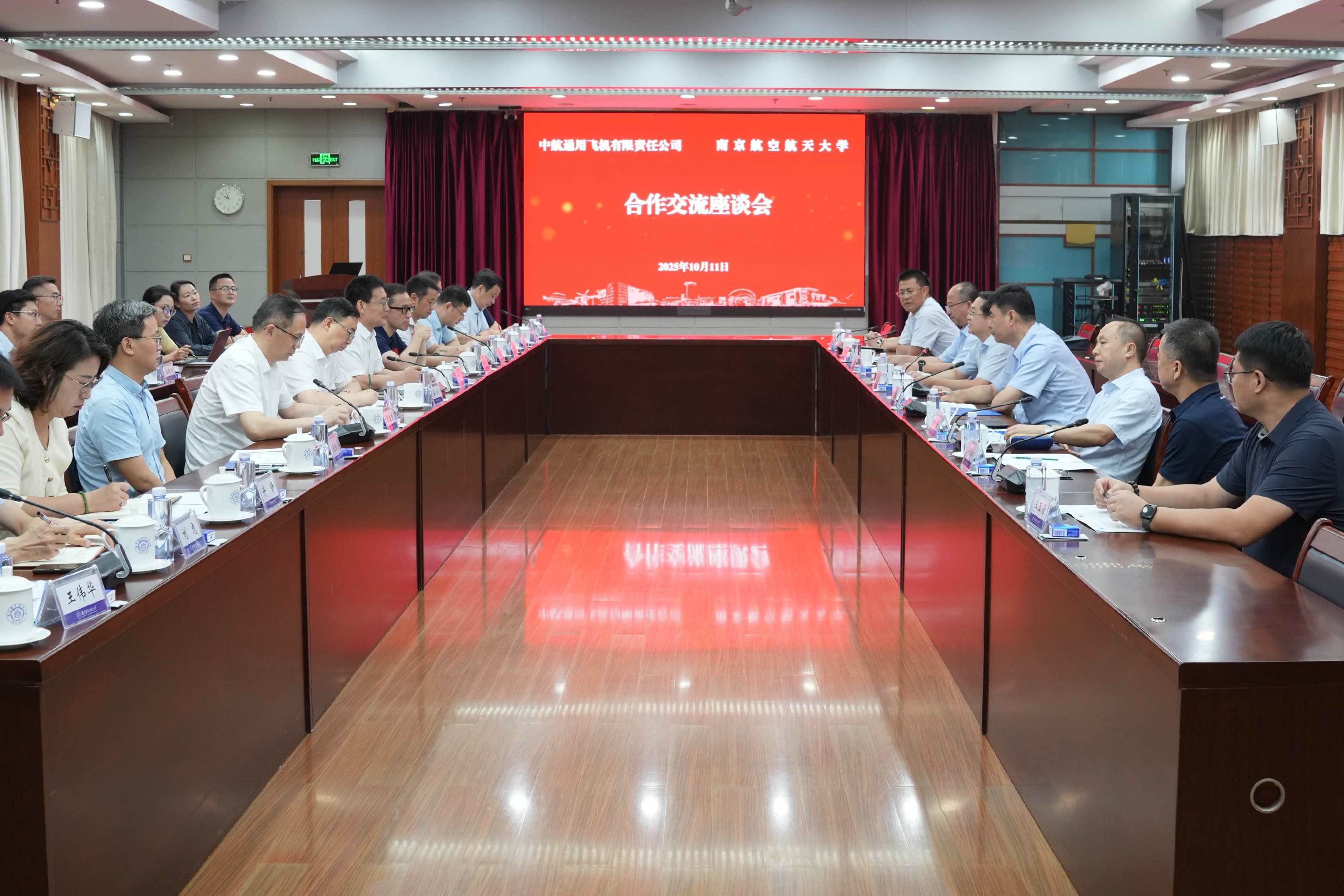 会上,科研院院长毛军逵汇报了学校科研情况与下一步合作设想。南航始终秉承“航空报国、贡献国防”的优良传统,在航空、航天、民航三大核心领域取得了显著成就。近年来,学校积极响应国家号召,深度服务国防现代化建设和社会经济发展大局,与多家央企军工集团建立了全面战略合作关系并取得了丰硕的合作成果。展望未来,双方将深化“有组织”的科研合作,着力构建高效协同的合作机制,携手承担国家重大科研项目,通过优化资源配置,实现双方优势互补,形成“1+1>2”的强大合力。双方围绕学科建设、人才培养、科研合作等开展座谈交流,为后续合作与发展奠定了坚实基础。