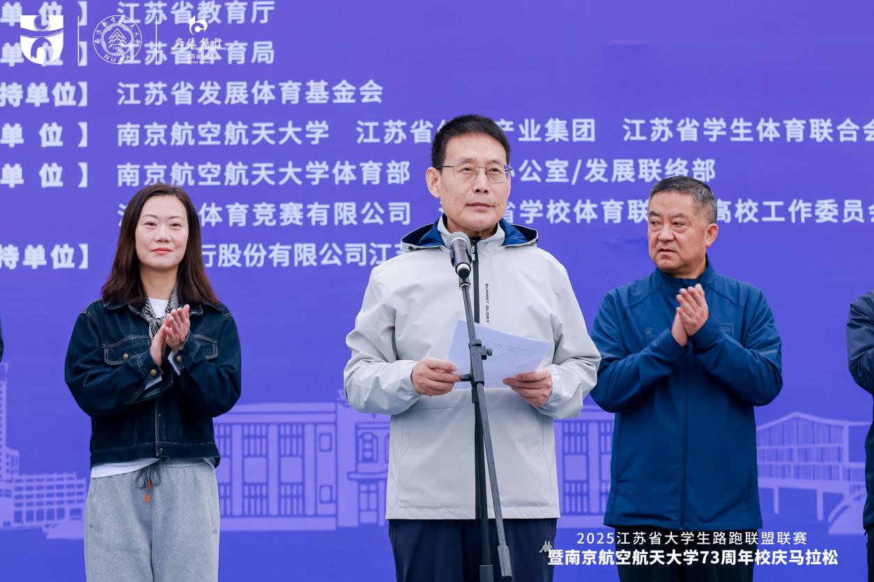 甄良在致辞中向全校师生员工和海内外校友致以节日问候,向出席活动的领导嘉宾和参赛运动员表示热烈欢迎。他指出,希望以本次马拉松为契机,牢固树立“健康第一”的理念,让广大师生更加热爱运动、热爱生活,在体育锻炼中增强体质、磨练意志,在坚持运动中更健康、更自信、更从容,弘扬并践行好“团结、俭朴、唯实、创新”的校风和“智周万物、道济天下”的校训,在服务新型工业化和国防现代化的新征程中,奋力跑出属于南航人的精彩成绩。