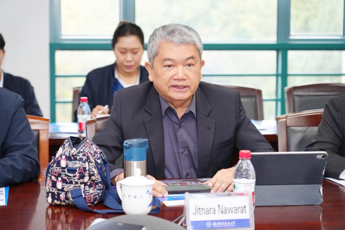 黄志球对泰国先皇理工大学一行来访表示欢迎。他指出,今年是中泰两国正式建立外交关系50周年,两国在经济、文化、教育等领域交流密切,为两校深化合作奠定了坚实的基础。南航自2009年起开始招收泰国留学生,已累计培养了一批泰国籍优秀毕业生,为推动中泰友好交流与行业发展作出了贡献。泰国先皇理工大学代表团此访标志着双方合作进入新阶段,希望两校在学生交换、联合科研、学术交流等方面开展务实合作,培养更多兼具国际视野与专业能力的高素质人才,为推进中泰命运共同体建设,助力全球航空航天事业发展贡献力量。