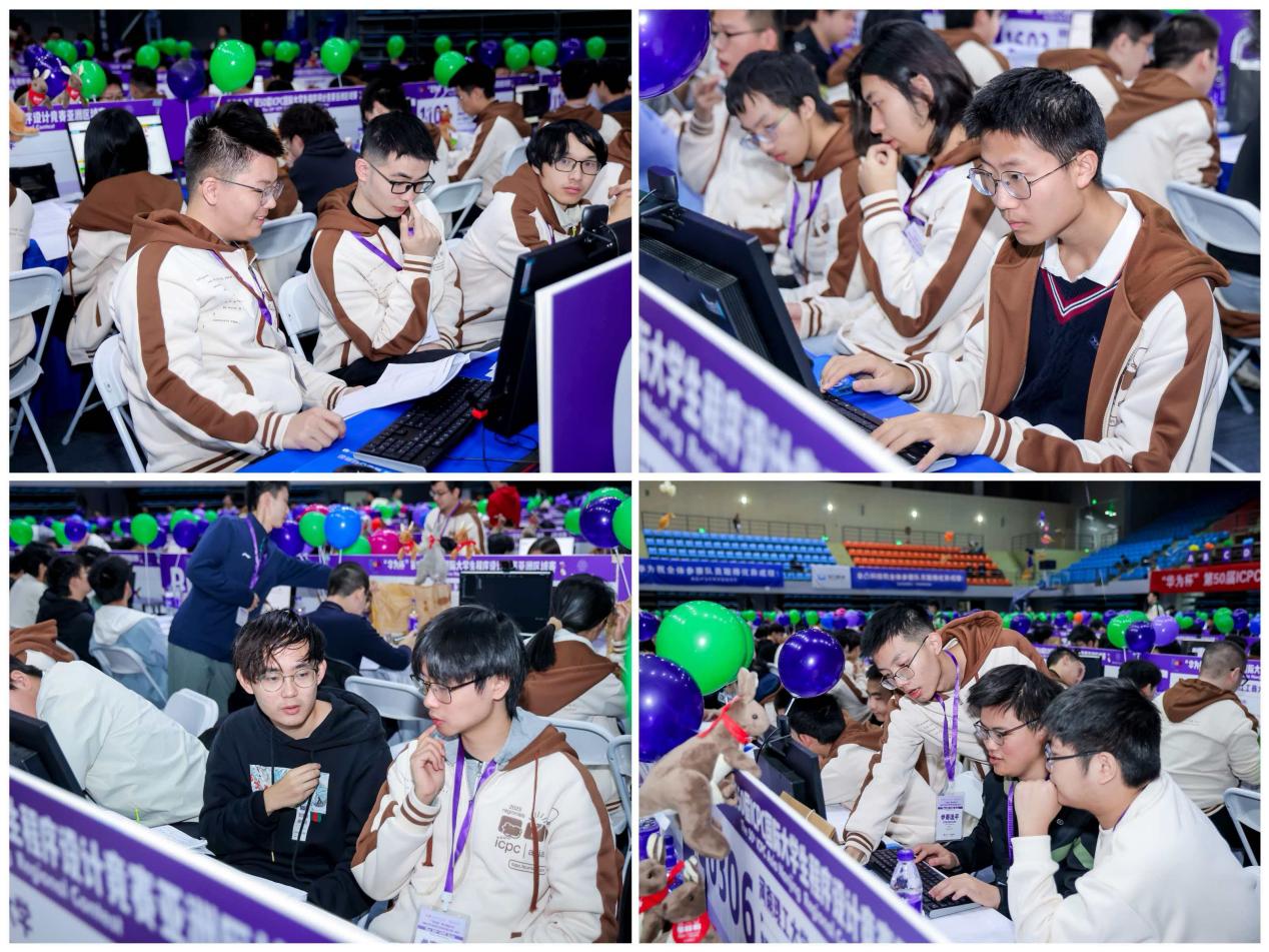 作为全球计算机领域顶级赛事,本次赛事吸引了191所学校的335支正式队及24支特邀队伍。赛场内,氛围紧张热烈,参赛选手们专注投入,在代码编写与算法优化中高效协作,展现出扎实的专业功底与良好的团队协作能力;赛场外,100余名学生志愿者、工作人员提供引导咨询、物资分发、技术支持等服务,为赛事保驾护航。