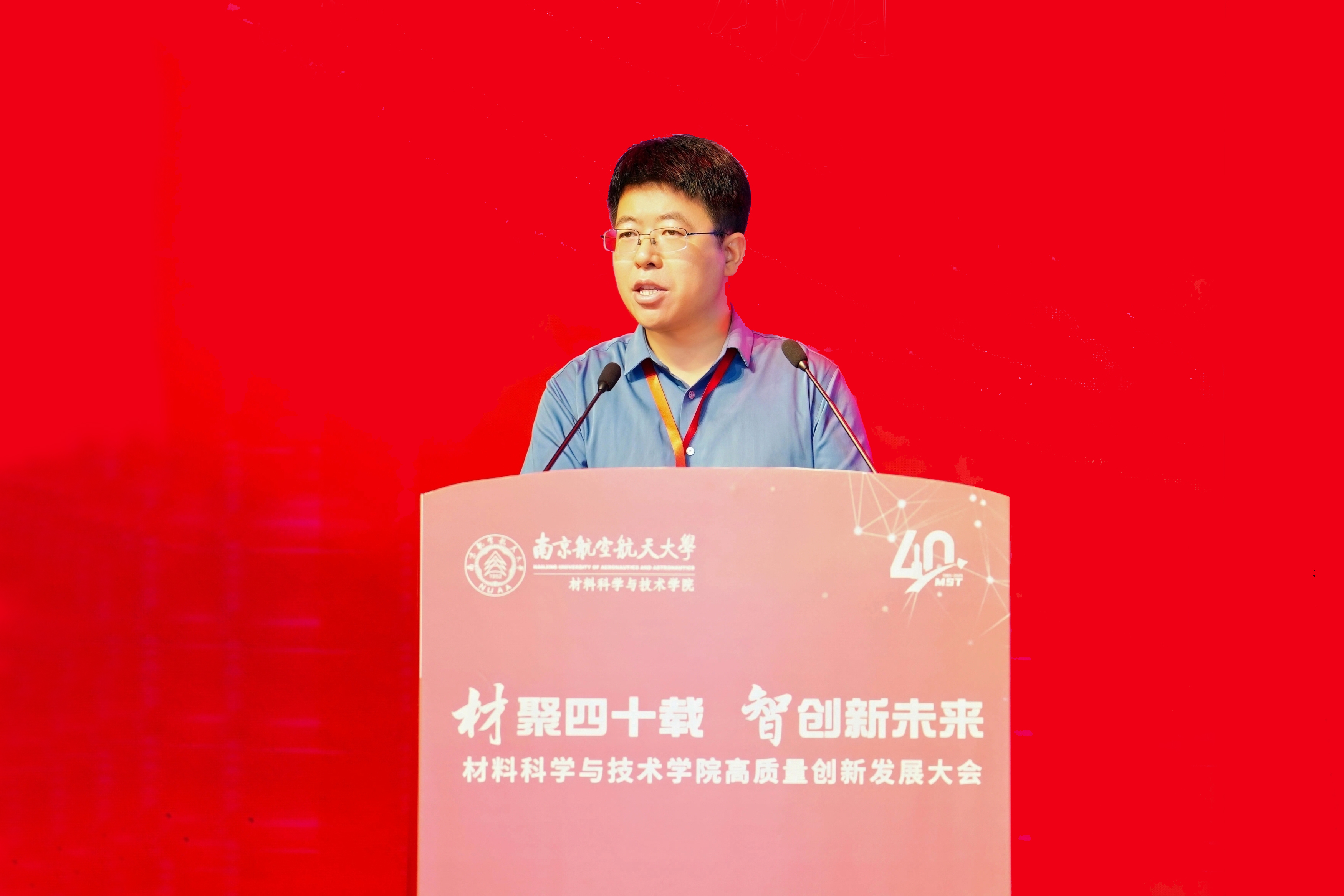 姜斌代表学校向为材料学院发展倾注心血的老领导、老教师、老同志们致以最崇高敬意,向长期以来关心支持学院发展的社会各界朋友表示衷心感谢。他指出,学院自1985年创立以来,始终秉承“航空报国、贡献国防”的传统,涵养“材料强国、材料报国”的使命担当,深耕于航空航天与国防现代化的沃土,走出了一条特色鲜明、成果丰硕的创新发展之路。面向未来,期待学院坚持党建领航,筑牢高质量发展的政治根基和组织保障,聚焦国家重大需求,持续优化学科布局、提升贡献能级,不断产出标志性成果,彰显南航材料担当;抢抓发展机遇,持续搭建高层次人才干事创业平台,厚植拔尖创新人才培养沃土,奋力建设航空、航天、民航特色鲜明的世界一流材料学院。