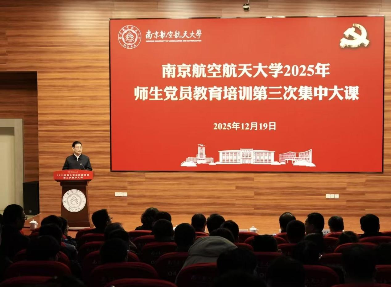 12月19日下午,我校举办2025年师生党员教育培训第三次集中大课,全体师生党员集中观看学习教育部党组书记、部长怀进鹏同志讲授“深入学习贯彻习近平总书记关于教育的重要论述 以教育强国支撑引领中国式现代化”视频课程。全体校领导、全校近万名师生党员在将军路校区主会场和各校区117 个分会场以及线上云课堂参加培训。校党委书记甄良主持并讲话。