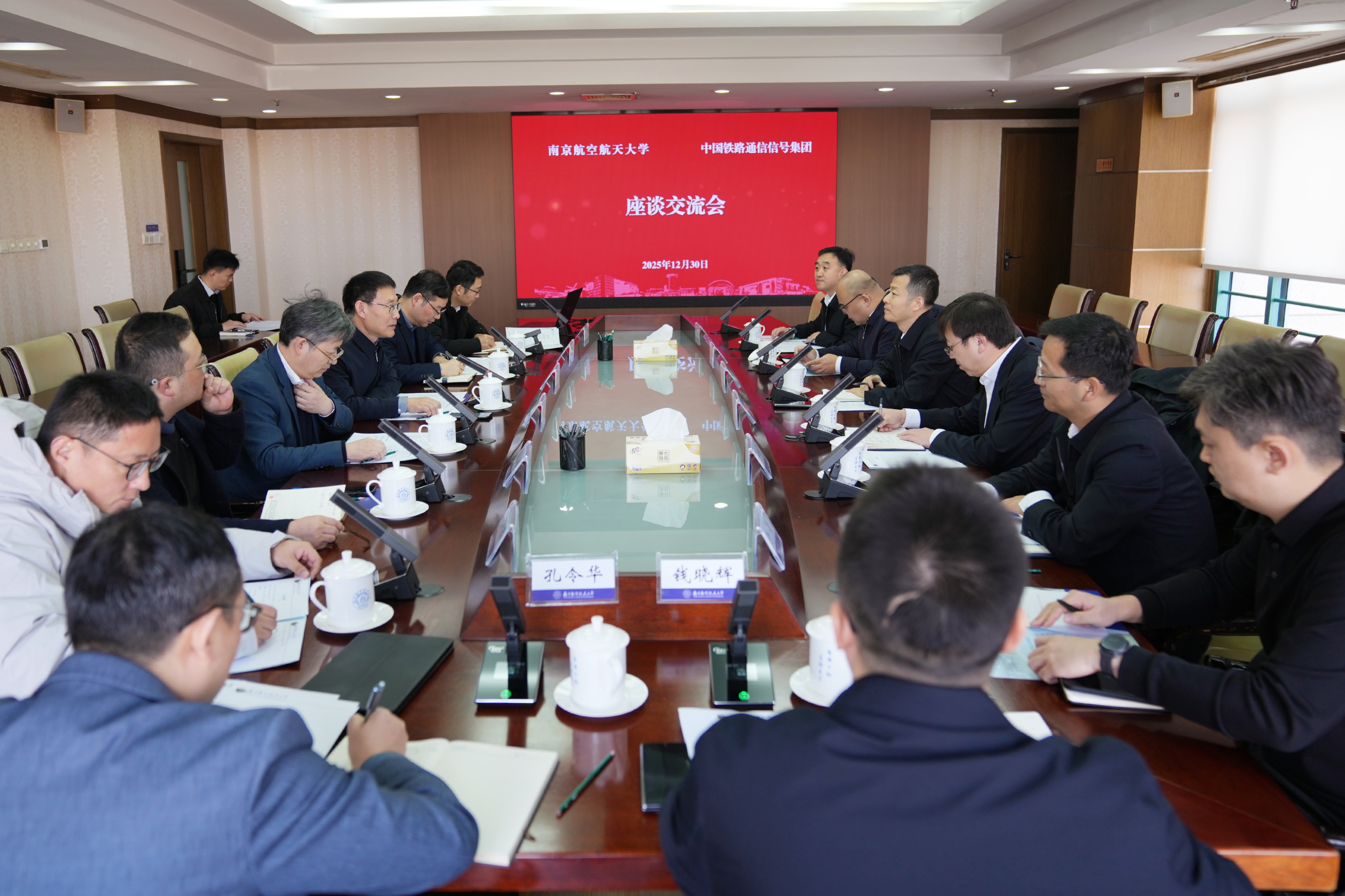 甄良代表学校对张志辉一行的到来表示热烈欢迎。他表示,南航认真践行“为党育英才、为国铸重器”的办学使命,坚持“三航”特色发展,并运用信息技术赋能“三航”,不断擦亮“三机”品牌。中国通号作为我国轨道交通控制系统的领军企业,在高铁列控系统等领域具有显著优势。期待双方进一步深化合作,在关键技术攻关、科技成果转化及未来产业人才培养等方面探索更多合作可能,更好推进教育科技人才一体化发展,产出更多标志性重大合作成果,携手为交通强国建设作出新的更大贡献。