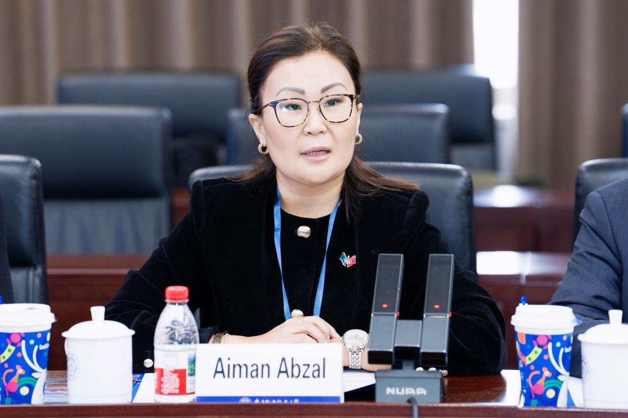 艾曼・阿布扎尔对我校的热情接待表示感谢。她高度赞赏我校在航空、航天、民航、人工智能等领域取得的卓越成就,详细介绍了哈萨克斯坦高等教育发展现状、国际合作战略布局及核心发展愿景。她表示,哈萨克斯坦教育部国际教育与创新中心始终致力于搭建跨国教育科技合作桥梁,南航的学科优势、科研实力以及人才培养水平与哈萨克斯坦相关领域发展需求十分契合。期待以本次访问为起点,双方建立长期稳定、高效务实的合作机制,推动双方在人才联合培养、科研协同创新、合作平台共建等方面取得实质性合作成果。