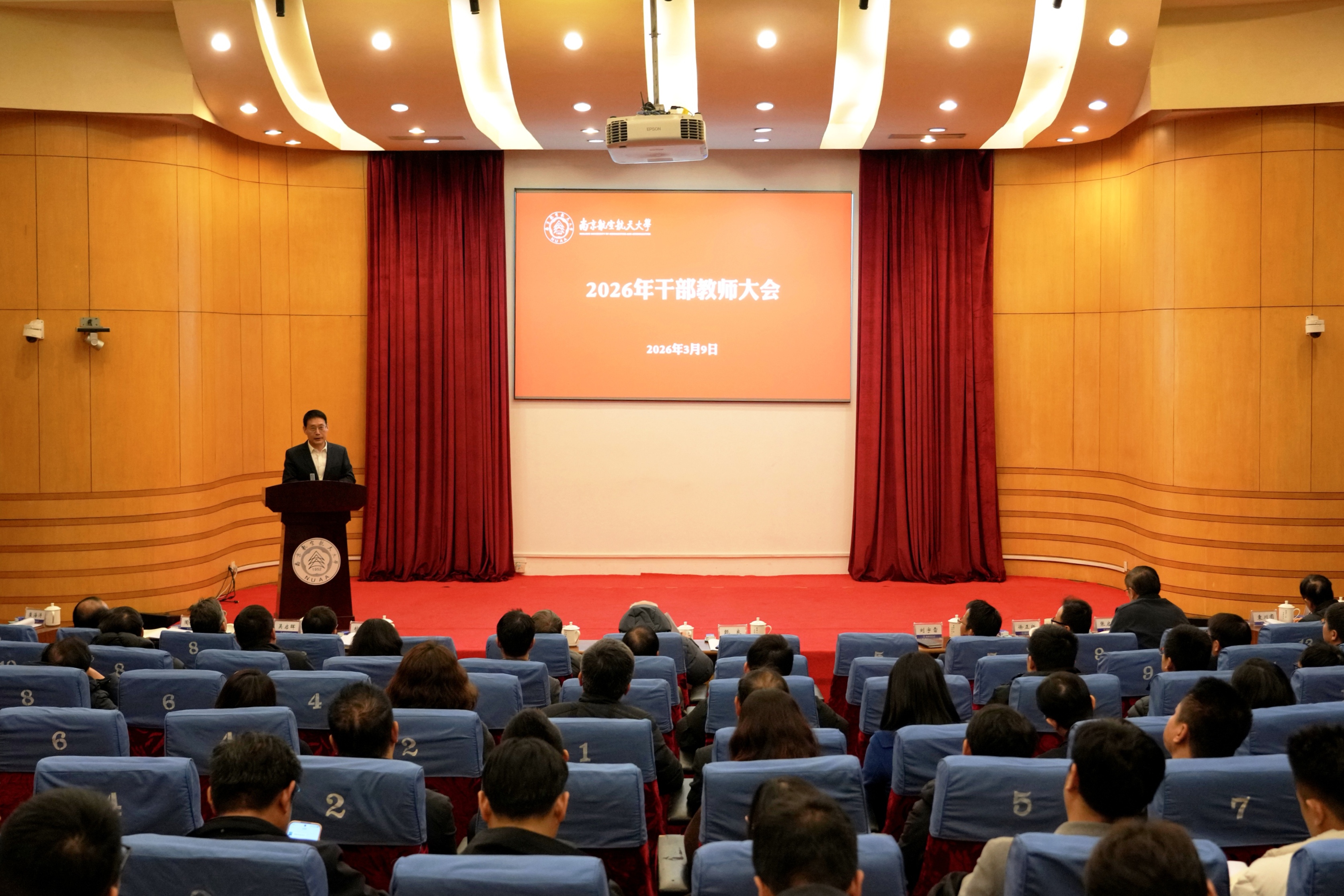 3月9日,我校召开2026年干部教师大会。中国科学院院士朱荻,全体校领导、党委常委、校长助理,校级老领导代表等出席会议。会议通过线下主会场、线上分会场同步召开。校党委副书记陶勇主持会议。