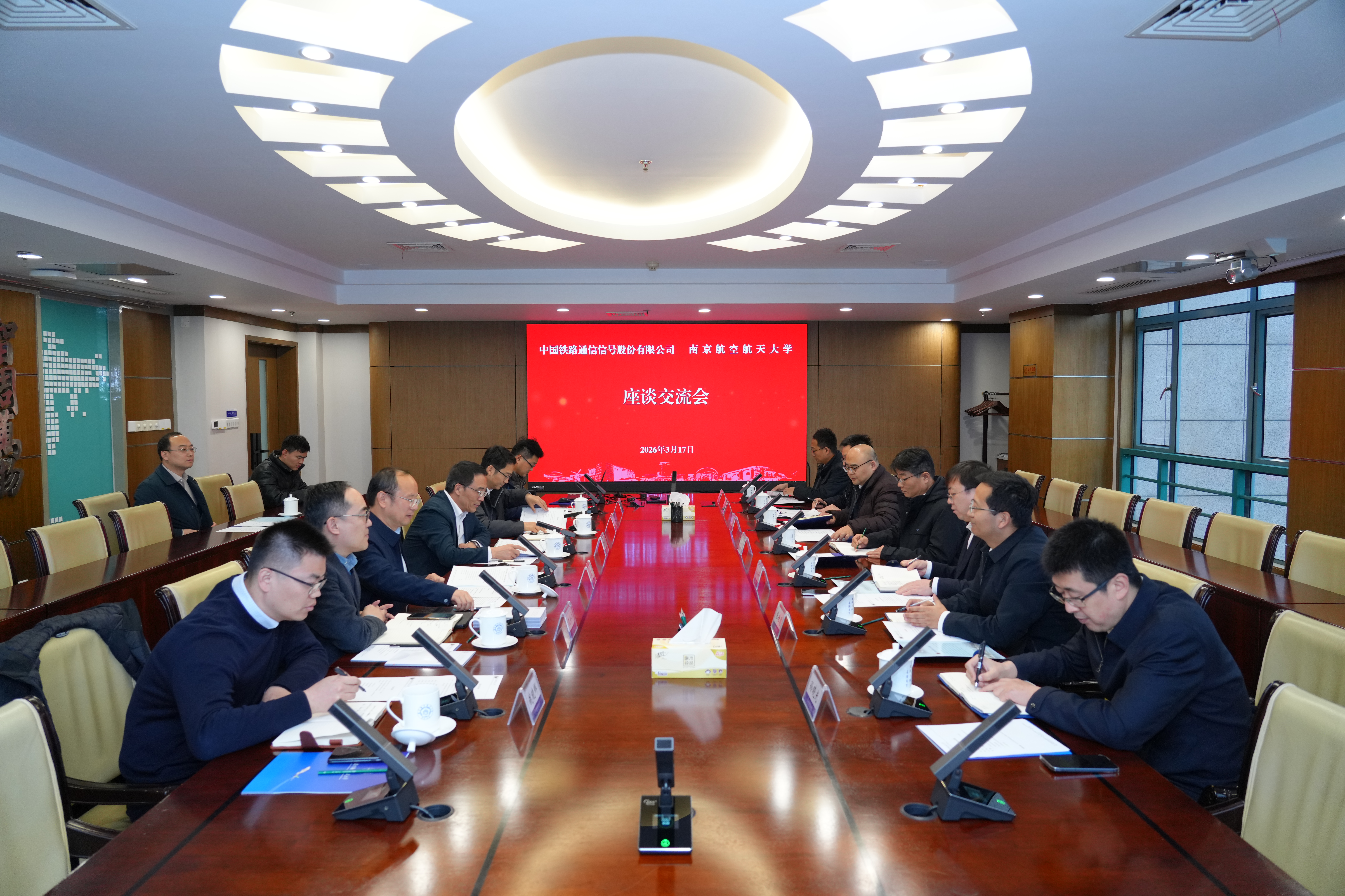 3月17日,中国铁路通信信号集团有限公司(以下简称“中国通号”)总裁董宝良一行来校调研,围绕深化校企合作、共促低空经济发展等开展交流。我校副校长崔海涛出席座谈会。